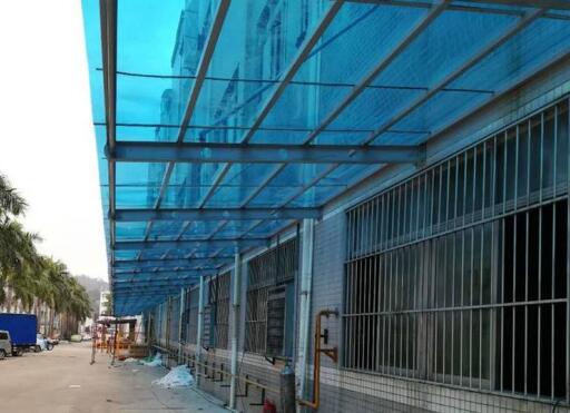 PC板檔雨棚,PC板雨棚案例不論安裝什么款式什么樣的擋雨棚,大家都希望能夠用的時(shí)間長(zhǎng)一些,使用期間不要出現(xiàn)老化、變色發(fā)黃、生銹、開裂、漏水等問題,都想擁有一個(gè)使用體驗(yàn)感滿分的擋雨棚。我們知道,擋雨棚除了擋雨,其實(shí)還面臨著每日暴曬陽光的情況,擋雨棚不僅要能夠擋雨,還要能夠承受住紫外線的傷害,這樣才可以減少